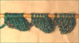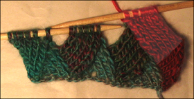 Row 11: sl 1, p4, p2tog, turn - end of Diamond One - Do Not Turn