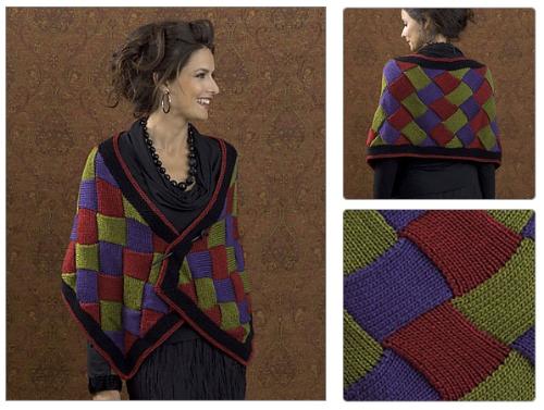 Here is entrelac wrap pattern designed by Kathy Perry and named Santiago Entrelac Wrap.